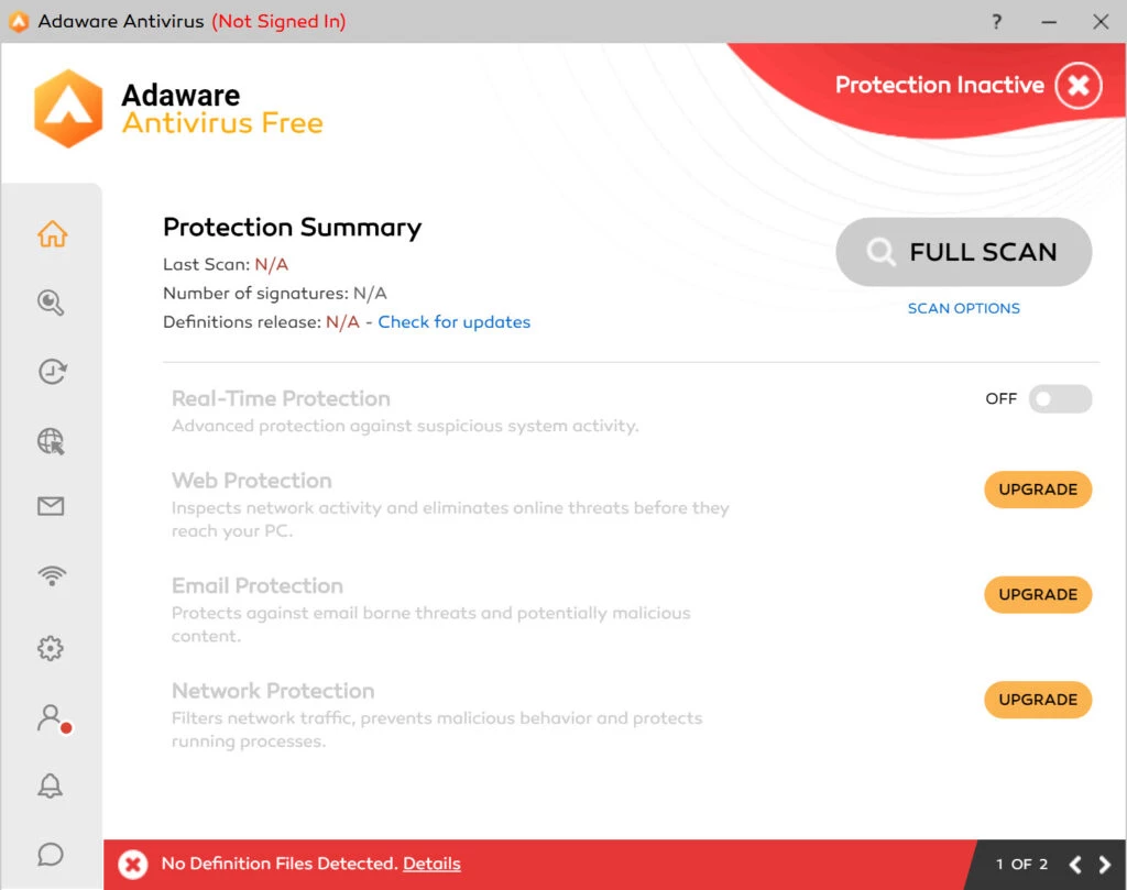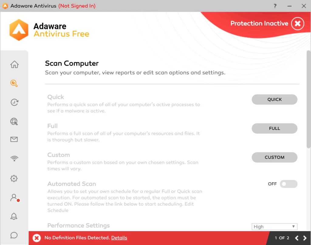 Adaware обеспечивает лучшую интеграцию с операционными системами Windows 10 и Windows 11 и предлагает 3 основных варианта сканирования, включая быстрое, полное и выборочное.